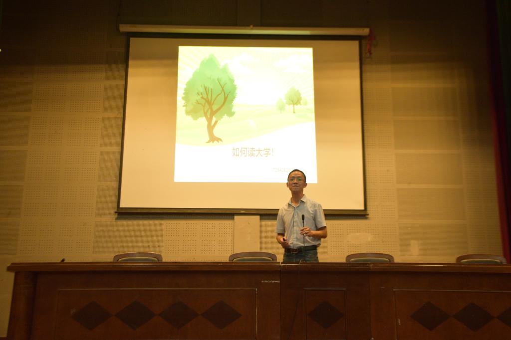 党委副书记王辉老师。他讲授的主题为“如何读好大学”。就本次主题,王辉书记抛出了“学会三件事、读懂三句话、培养三种情操”三个话题,他从多方面多角度提醒同学们,未来大学学习生活中,自理、自制学习的重要性,也给出了大学生高效学习的七种方法建议。随后,王辉书记向新生提出三点希望,希望同学们能够心系社会责任感、家国情怀并拥有国际视野。讲座最后,他向全体新生介绍了我校海外合作交流项目。