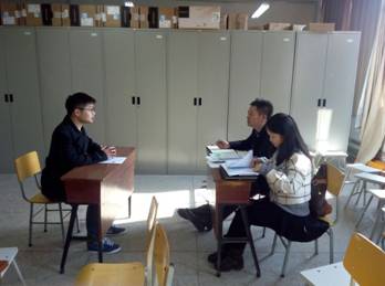 本次招聘会该单位拟为下属22家子公司招聘工程技术类员工20名、财务管理类员工9名、市场营销类员工8名,共37个岗位,我校共有50多位2016届毕业生参加了宣讲会,会后41位同学投递了简历。企业招聘负责人在经过仔细的筛选后,通知21位同学进行现场初级面试。仅用了不到2个多小时,每位应聘者的企业二对一面试就顺利结束了,再次显示了国企面试考官的专业和高效。面试结果需等企业进行完其它高校的校园面试后统一公布。